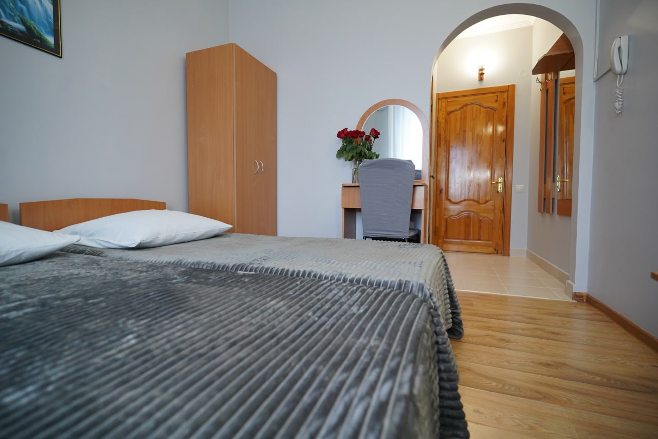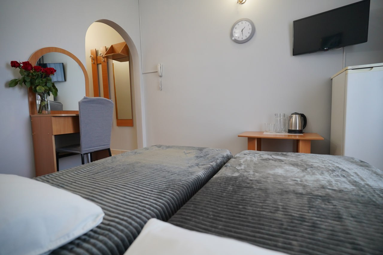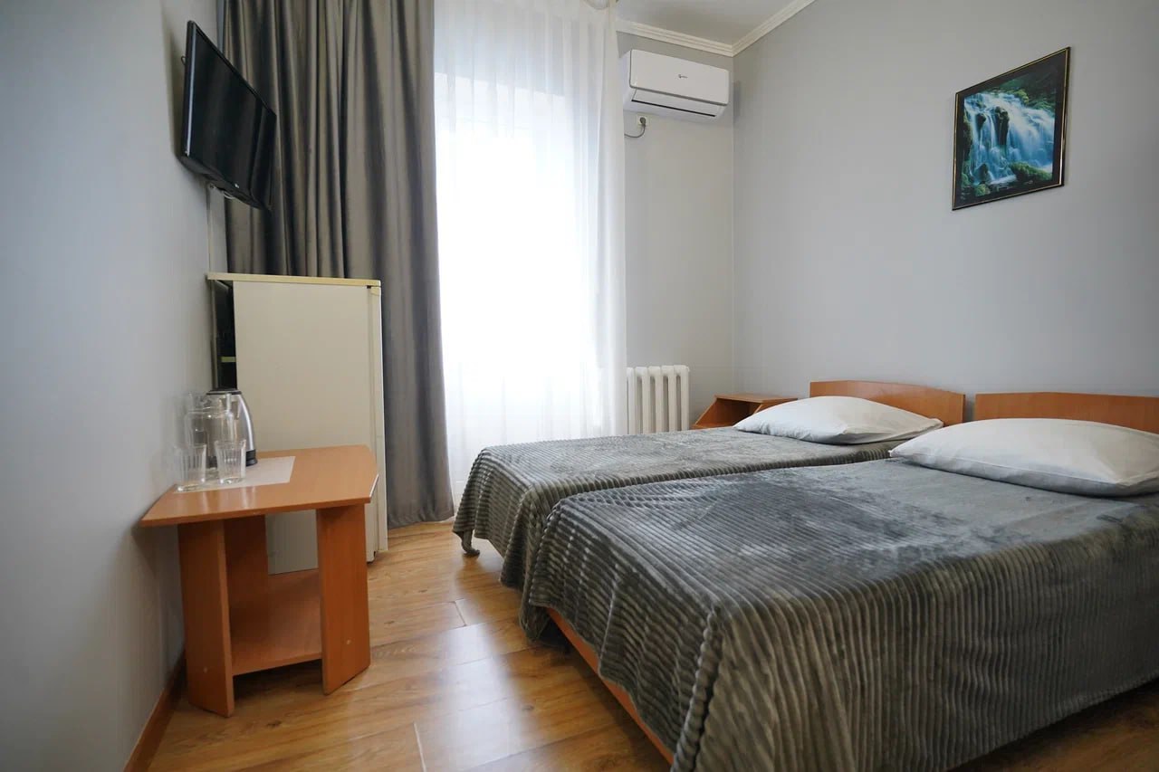 Комната оснащена всем необходимым и отвечает запросам требовательных отдыхающих. Имеет выход на балкон. Окна направлены на ул. Красноармейскую.